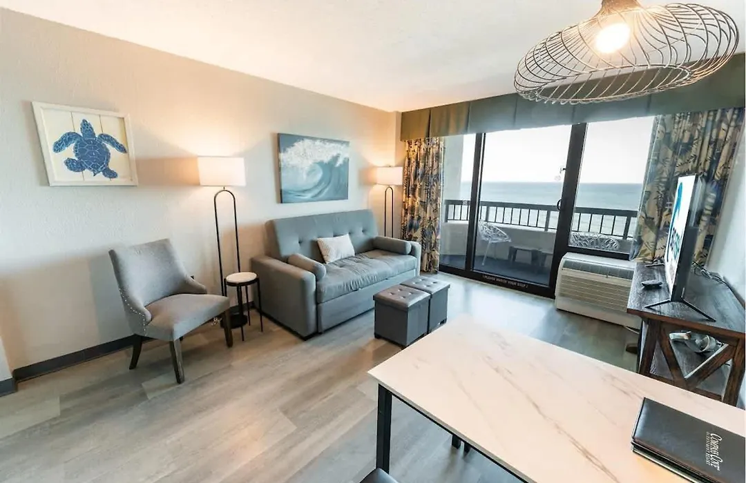 The beachfront 1Br Direct Oceanfront Views Pools, Modern Decor! Apartment Myrtle Beach is located just 1.7 km from Grand Strand Plaza Shopping Center and an 18-minute walk from the Springmaid Pier. Offering a patio, this apartment also features a private swimming pool for guests ultimate relaxation.